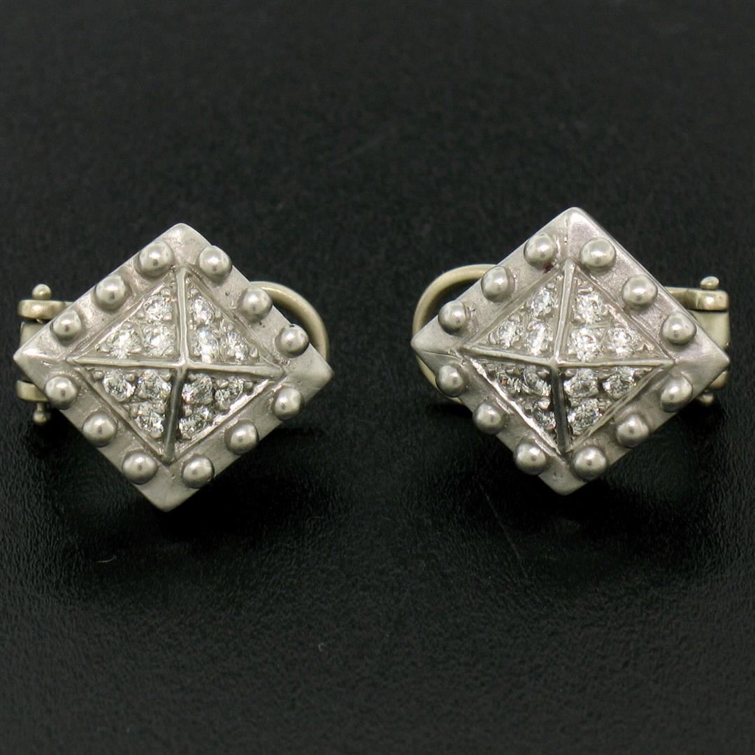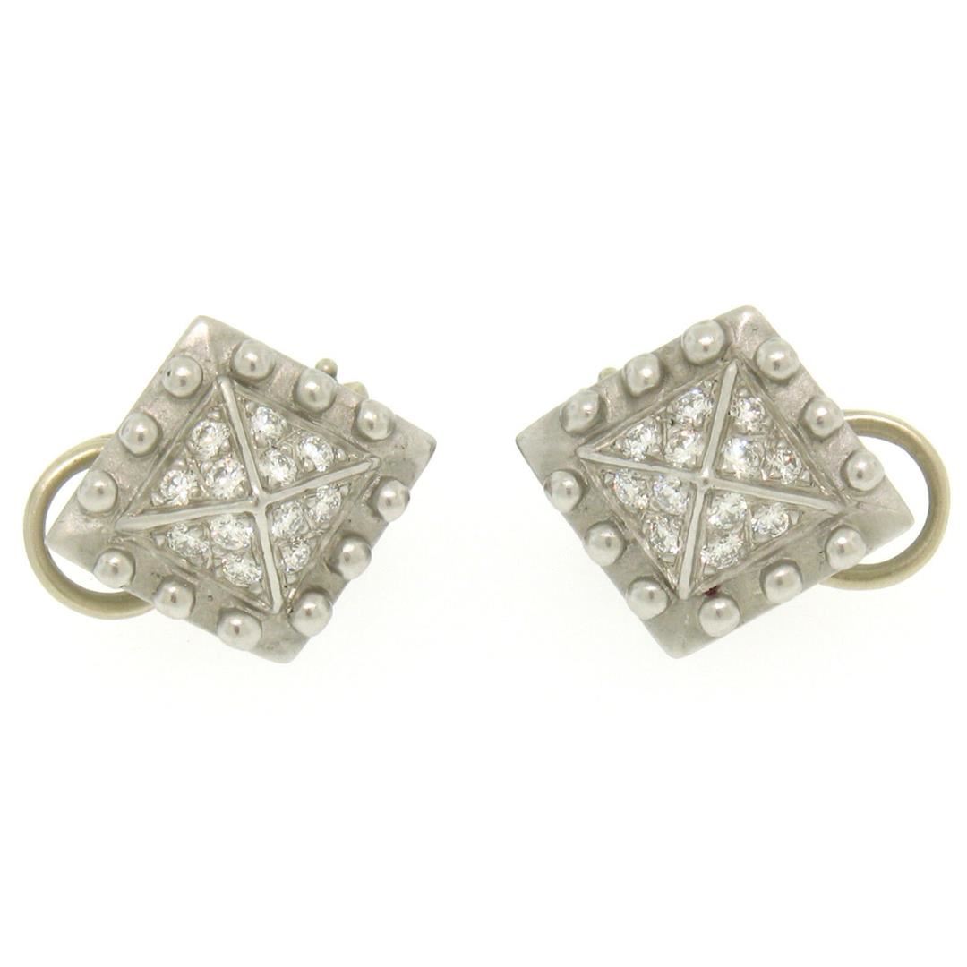 One Barry Kieselstein Cord Platinum 0.50ctw VVS Diamond Small Pyramid Clip On Earrings. Item Details: Material: .950 Solid Platinum, Weight: 9.6 Grams, Stone(s): (24) Natural Genuine Diamonds - Pav� Set - Round Brilliant Cut - E Color - VVS2 Clarity, Total Carat Weight: 0.50ctw (approx.), Backing: Clip-on Backings (Pierced ears are not required.), Width: 13.25mm, Height: 15.0mm, Thickness: 6.53mm (projects off the ear) Signature: B. Kieselstein Cord Plat � 1993 Condition: Like New!