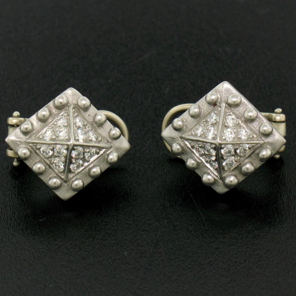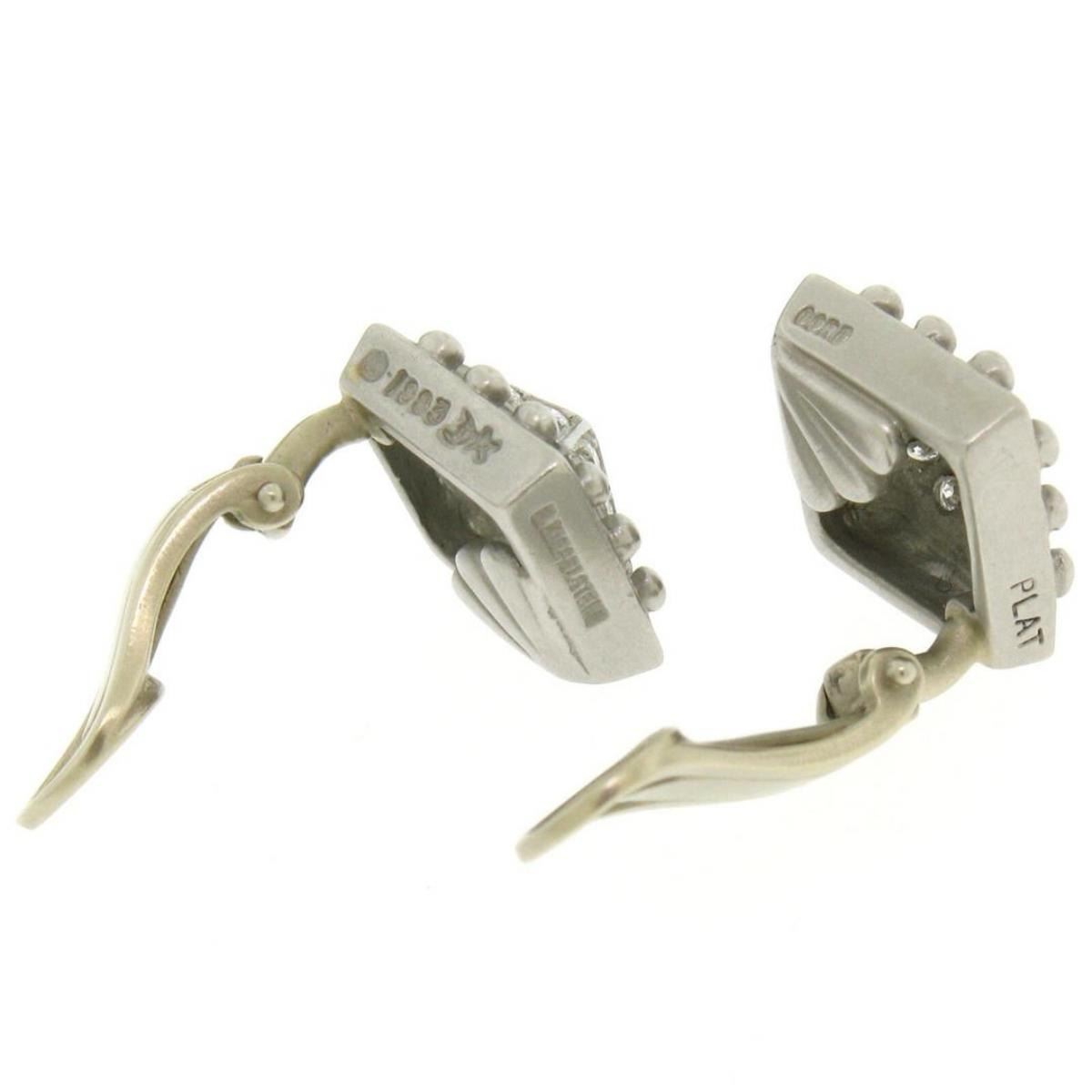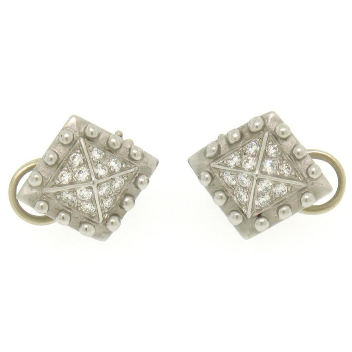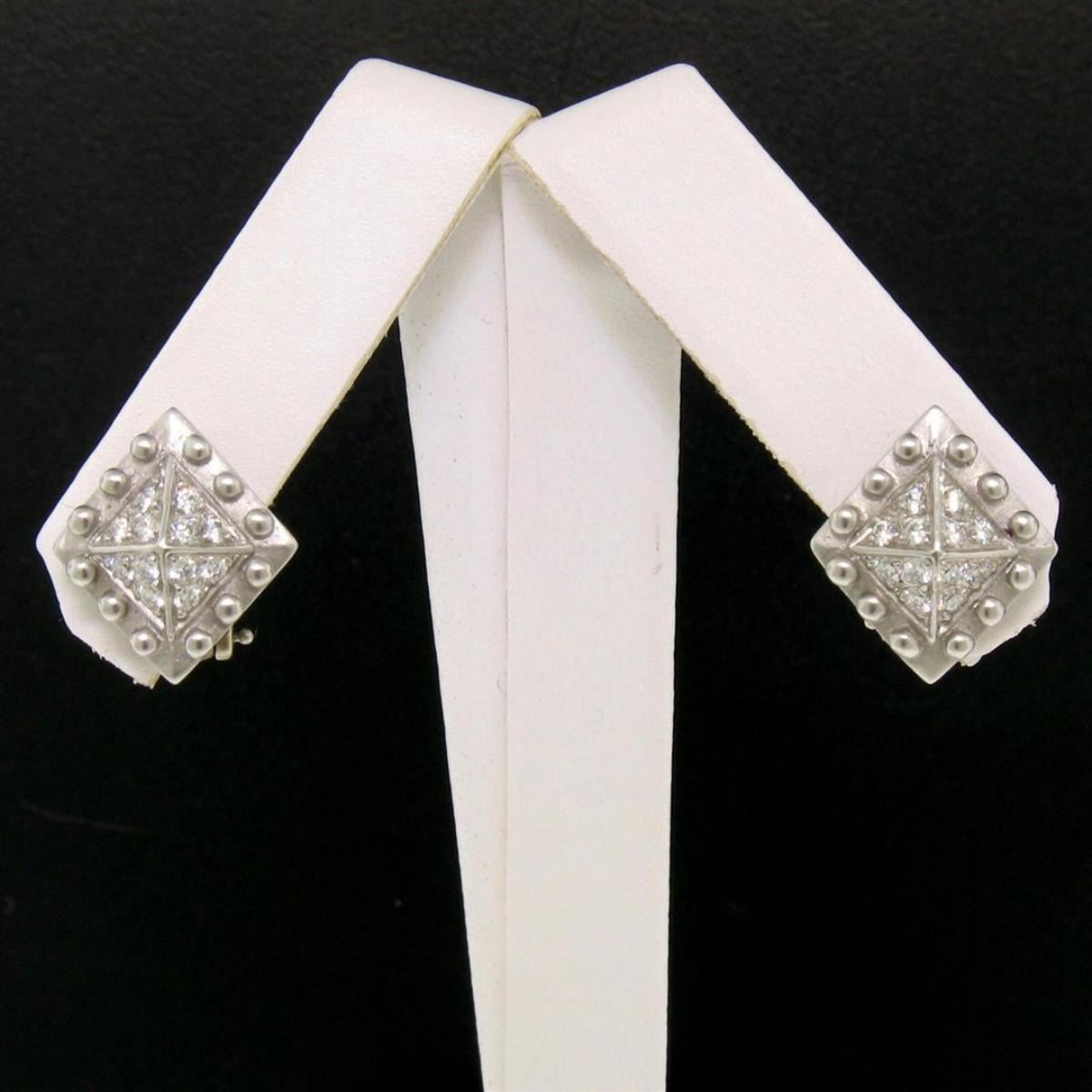 One Pair Barry Kieselstein Cord Platinum 0.50 ctw VVS Diamond Small Pyramid Clip On Earrings. Item Details: Material: .950 Solid Platinum, Weight: 9.6 Grams, Stone(s): (24) Natural Genuine Diamonds - Pavé Set - Round Brilliant Cut - E Color - VVS2 Clarity, Total Carat Weight: 0.50 ctw (approx.), Backing: Clip-on Backings (Pierced ears are not required.), Width: 13.25mm, Height: 15.0mm, Thickness: 6.53mm (projects off the ear) Signature: B. Kieselstein Cord Plat © 1993 Condition: Like New!