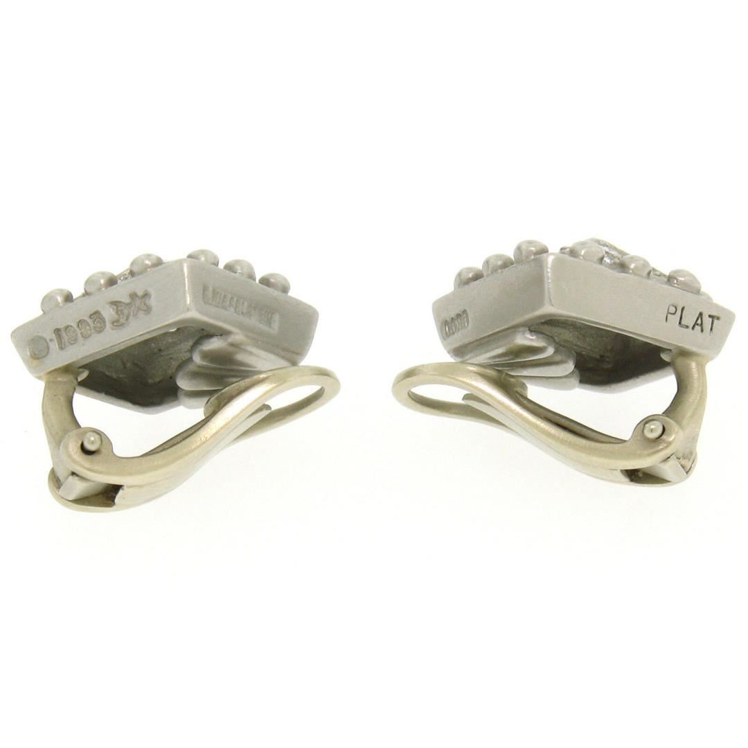 One Pair Barry Kieselstein Cord Platinum 0.50 ctw VVS Diamond Small Pyramid Clip On Earrings. Item Details: Material: .950 Solid Platinum, Weight: 9.6 Grams, Stone(s): (24) Natural Genuine Diamonds - Pavé Set - Round Brilliant Cut - E Color - VVS2 Clarity, Total Carat Weight: 0.50 ctw (approx.), Backing: Clip-on Backings (Pierced ears are not required.), Width: 13.25mm, Height: 15.0mm, Thickness: 6.53mm (projects off the ear) Signature: B. Kieselstein Cord Plat © 1993 Condition: Like New!