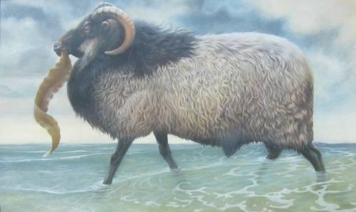 <B>Artist: </b>Barry L. Driscoll (British, 1926 - )<BR><b>Title:</b>North Ronaldsay Ram<BR><B>Medium:</B>Tempera on board<BR><B>Size:</B>21" x 35"<BR><B>Signed:</b>Lower right & dated '79