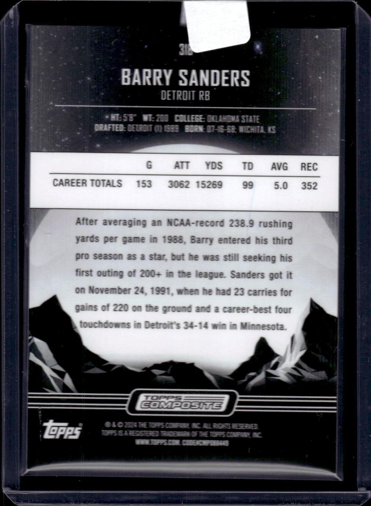 Barry Sanders Midnight Refractor 2024 Topps Composite #318