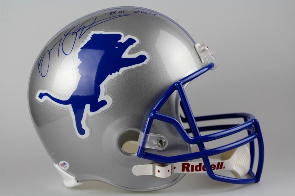 This is a Detroit Lions FULL SIZE REPLICA Helmet signed by perhaps their greatest player of all time, Hall of Fame RB Barry Sanders. This item comes complete with a certificate of authenticity from PSA/DNA.