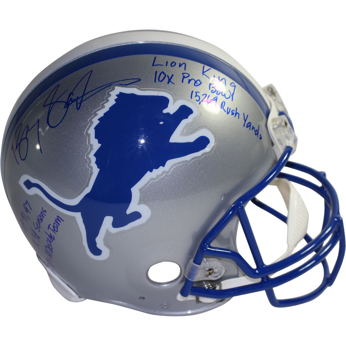Barry Sanders Signed Detroit Lions Riddell Pro Line Throwback 83-02 Helmet w/ "Lion King, 10x Pro Bowl, 15,269 Rush Yard, 2x MVP 91/97, 10x 1k Yd Season, 1990's All Decade Team" Insc