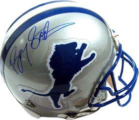 Barry Sanders was drafted by the Detroit Lions in 1989. In 1997, Sanders had his greatest season ever, when he rushed for a career-high 2,053 yards. In Sanders' career, he achieved Pro Bowl status in all of his 10 seasons as a pro. Sanders was named first team All-Pro eight times from 1989–1991 and 1993–1997 and was named second team All-Pro twice in 1992 and 1998. Sanders was also named All-NFC from 1989-1992 to 1994-1997. Sanders was named NFL Rookie of the Year in '89, Offensive Player of the Year in '94 and '97, NFL MVP in '97, and was named to the 1990s NFL All-Decade team. Barry Sanders has hand autographed this Detroit Lions Throwback Replica Mini Helmet. Schwartz Sports Hologram and Certificate of Authenticity from Athlon Sports.