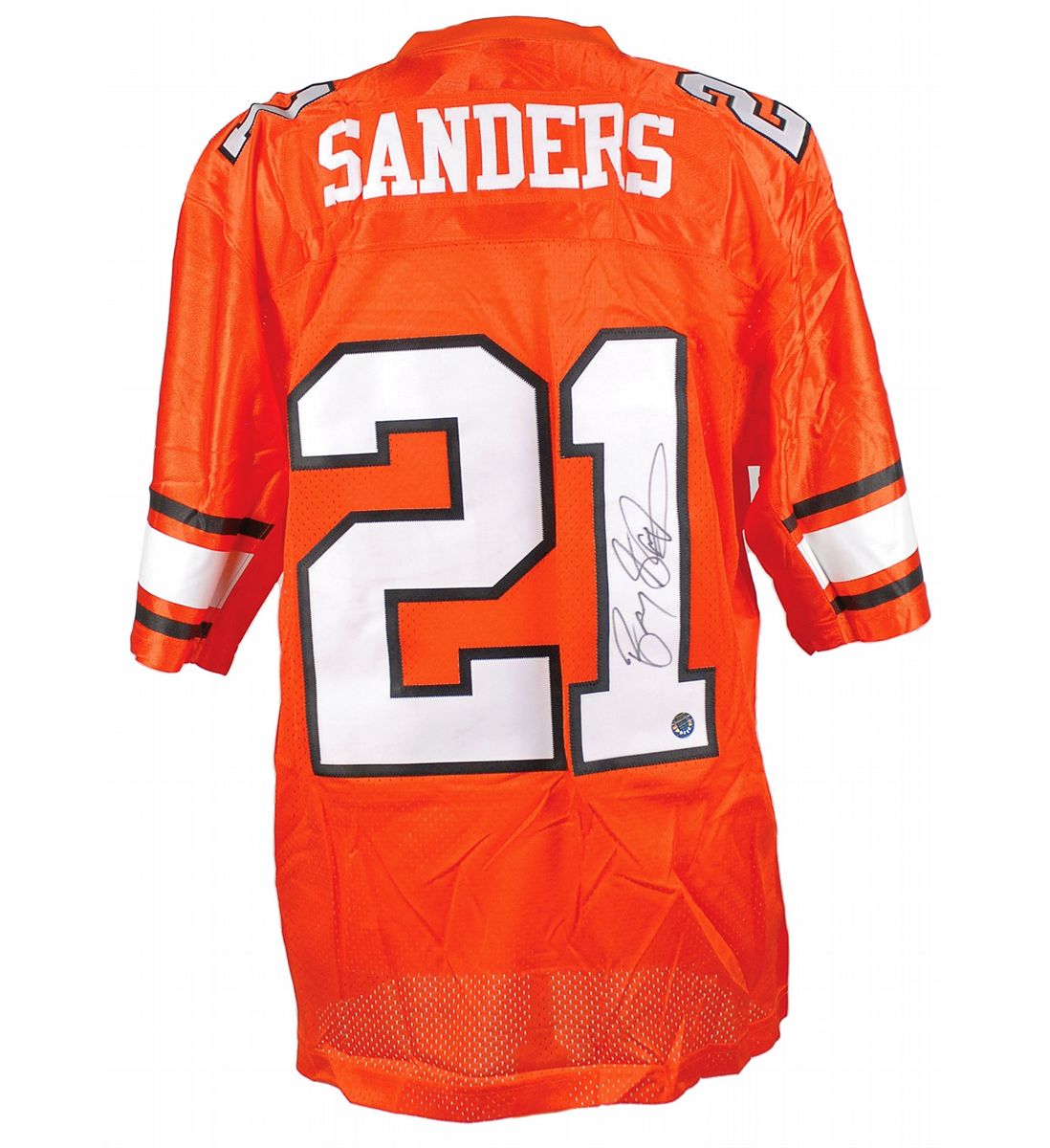 Official Nike replica Oklahoma State Cowboys football jersey, with sewn on letters and numbers, signed in black felt tip on the number on the back. In fine condition.