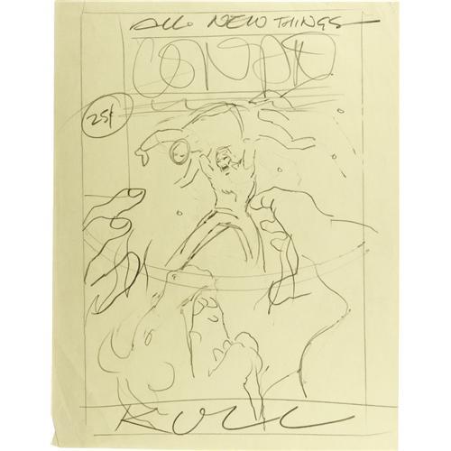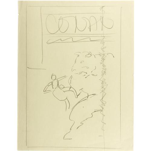 In the heart of Corinthia, Conan takes on a giant bully ally of the Red Priest, in the city-shattering cover of <B>Conan the Barbarian</B></I> #10. Fan fave Barry Smith works out the dynamics of the steely-sinewed Cimmerian versus the Bull-God, Anu, in these two lively cover preliminary sketches. Each sketch is drawn in graphite on a 8.5" x 11" sheet of yellow bond paper. In Very Good condition. <BR><BR><b>Shipping:</b> Small Flat (<a target="_blank" href="http://www.heritageauctions.com/common/shipping.php">view shipping information</a>)