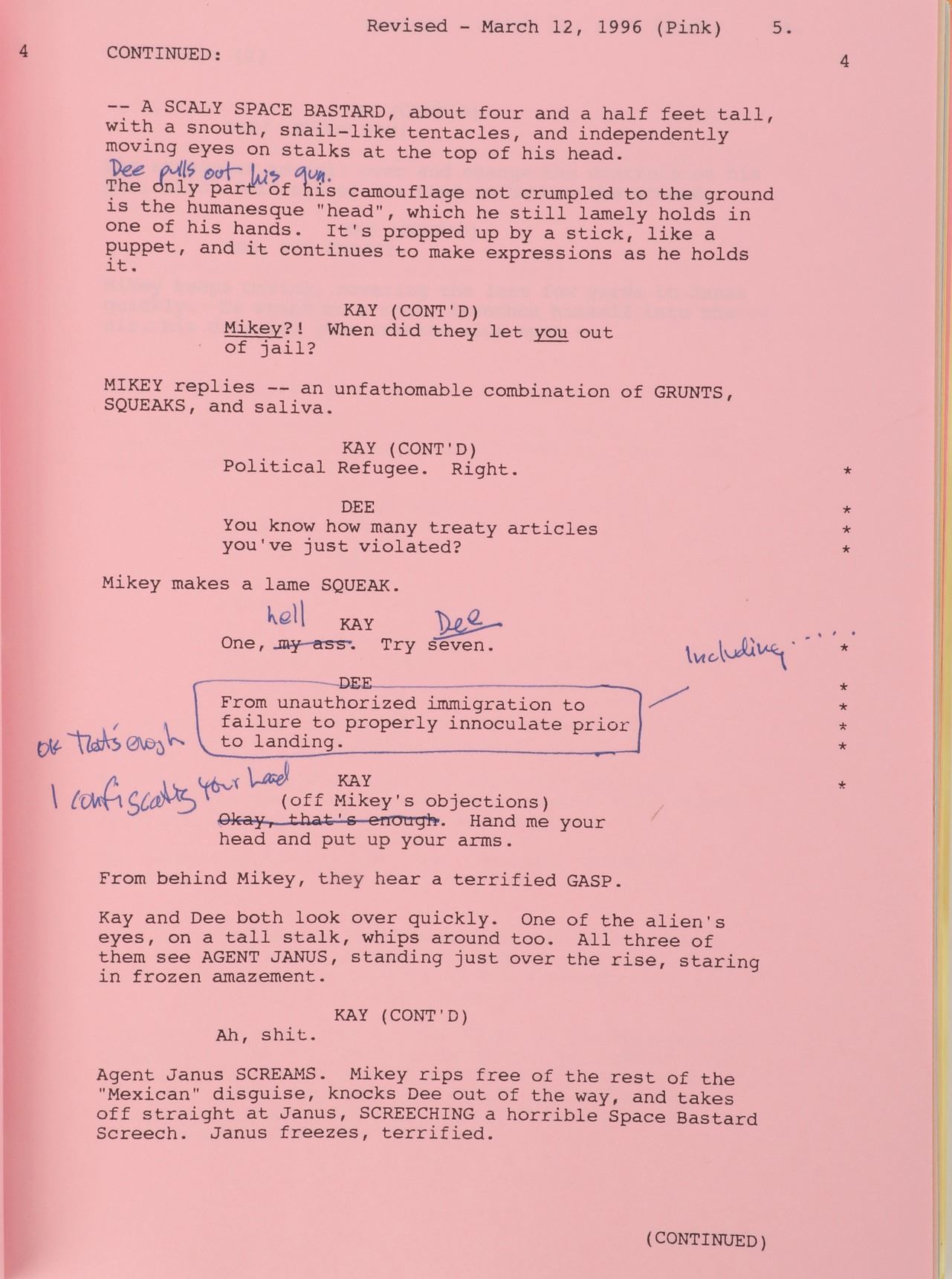 483. Barry Sonnenfeld's Men in Black script. (Columbia Pictures 1997) Original bradded 150+multicolor page Revision Draft script signed, "Barry Sonnenfeld" on the memo cover page, along with every revision date/color added. Exhibiting production wear. In very good to fine condition. From the collection of Barry Sonnenfeld. $300 - $500