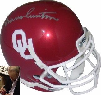 Barry Switzer became head coach at Oklahoma in 1973, leading the team to undefeated seasons that year and the next. Oklahoma won national championships in 1974, 1975 and 1985 under Switzer's leadership. The team won or shared in the Big Eight Conference championship every year from 1973 to 1980. During his sixteen years as head coach at Oklahoma, his teams won eight of the thirteen post-season bowl games they played in, and 54 of his players were selected as All-Americans. Barry Switzer has hand signed this Oklahoma Sooners Authentic Schutt Mini Helmet. Photo of the signing, FI hologram and Certificate of Authenticity from Athlon Sports.