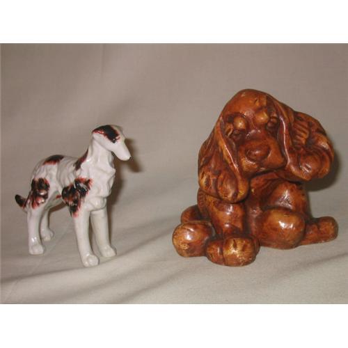 Two cute collectors dogs, a Barsoi and a cocker made in Germany 1850-1880