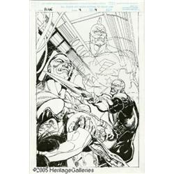 <B>Bart Sears and Andy Smith - Blade: Vampire Hunter #4, page 4 Original Art (Marvel, 1999).</B></I> Legendary "day-walker" Blade uses his lethal skills in his quest to exterminate the vampire underworld from the face of the earth. Bart Sears penciled this graphic composition from the fourth <B>Blade: Vampire Hunter</B></I> comic and Andy Smith handled the inks and finishes. Sears also handles the writing for this story, "Chaos, Part 5 : Frosty Memories". The image size is 9" x 13.5" and in Excellent condition.