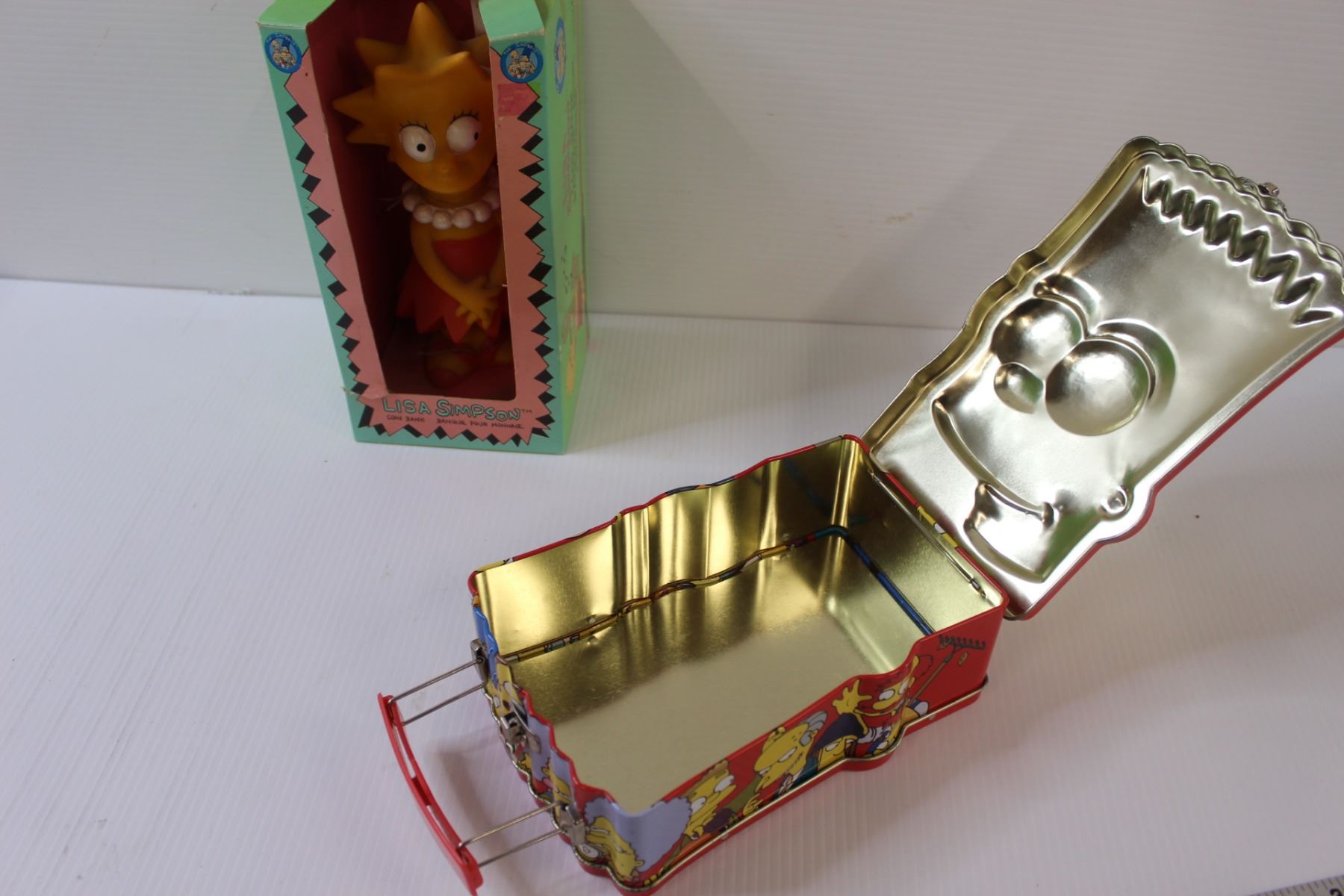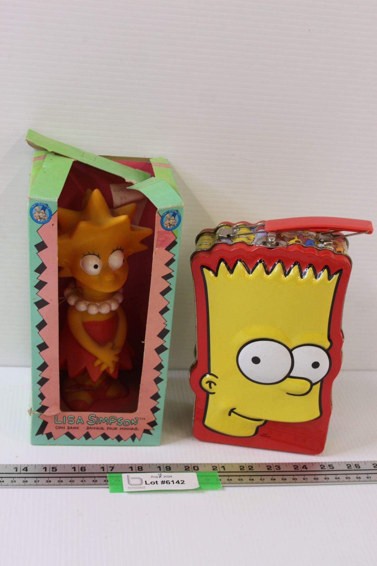 Bart Simpson Tin Lunch Box & Lisa Simpson Coin Bank, as is