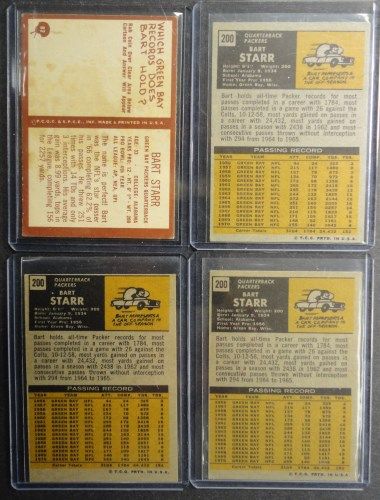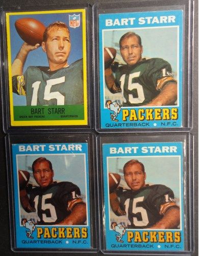 Includes 1967 Philadelphia, #82 Bart Starr and 3 - 1971 Topps #200 Bart Star. All EX. Book $110.00. Est Value $55.00 - $75.00.