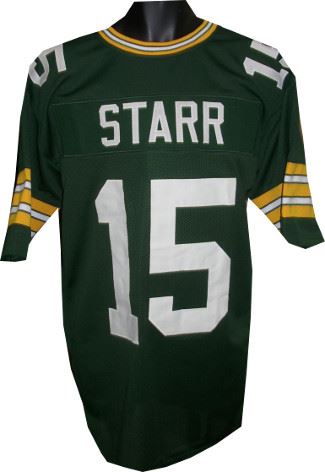 Bart Starr was an incredible quarterback for the Green Bay Packers. Bart Starr was selected as the MVP as he led the Packers to back-to-back wins in Super Bowl I & II. He was elected to 4 Pro Bowls and named league MVP in 1966. While coaching the Packers in 1977 Starr was inducted into the Pro Football Hall of Fame.This is a Bart Starr Green Bay Packers unsigned Green TB unlicensed custom-prostyle jersey with twill stitched nameplate and numbers. perfect for autograph or to wear! Size XL