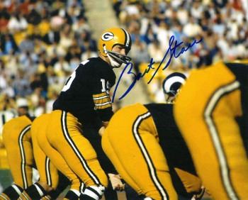 Bart Starr was the quarterback for the Green Bay Packers from 1956 to 1971 and the Most Valuable Player of the first two Super Bowls. He earned four Pro Bowl selections and was inducted into the Pro Football Hall of Fame in 1977. As Vince Lombardi's quarterback, Starr's Packers won NFL Championships in the 1961, 1962, 1965, 1966, and 1967 seasons. Following the NFL championships in 1966 and 1967, he led the Packers to convincing victories over the champions of the rival AFL in the first two Super Bowls and was named the Most Valuable Player of both games. Bart Starr has hand autographed this Green Bay Packers 8x10 Photo. Certificate of Authenticity from Athlon Sports.