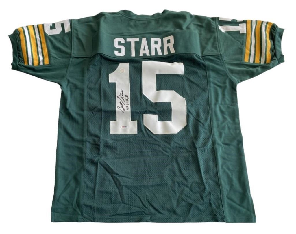 Bart Starr #15 Green Bay Packers signed jersey. GFA & PSA/DNA authenticated 25x33 inches. FL106