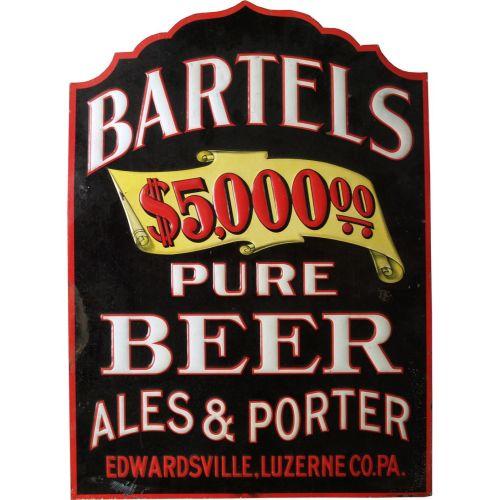 Bartels Beer Die Cut Embossed Tin Sign, Excellent Condition 20 x 29