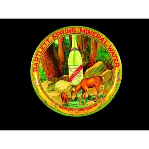 Bartlett Spring Mineral Water Tin Serving Tray, Bartlett Springs Co., San Francisco, California, excellent condition, 13 inch diameter.