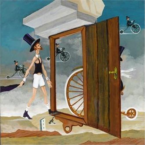 Baruch Elron, 1934 - 2006, The Bike Riders, Oil on canvas, 40x40 cm, Signed., , , , ,