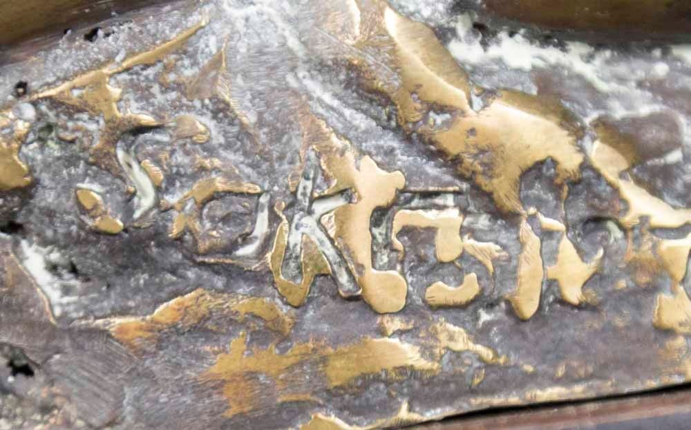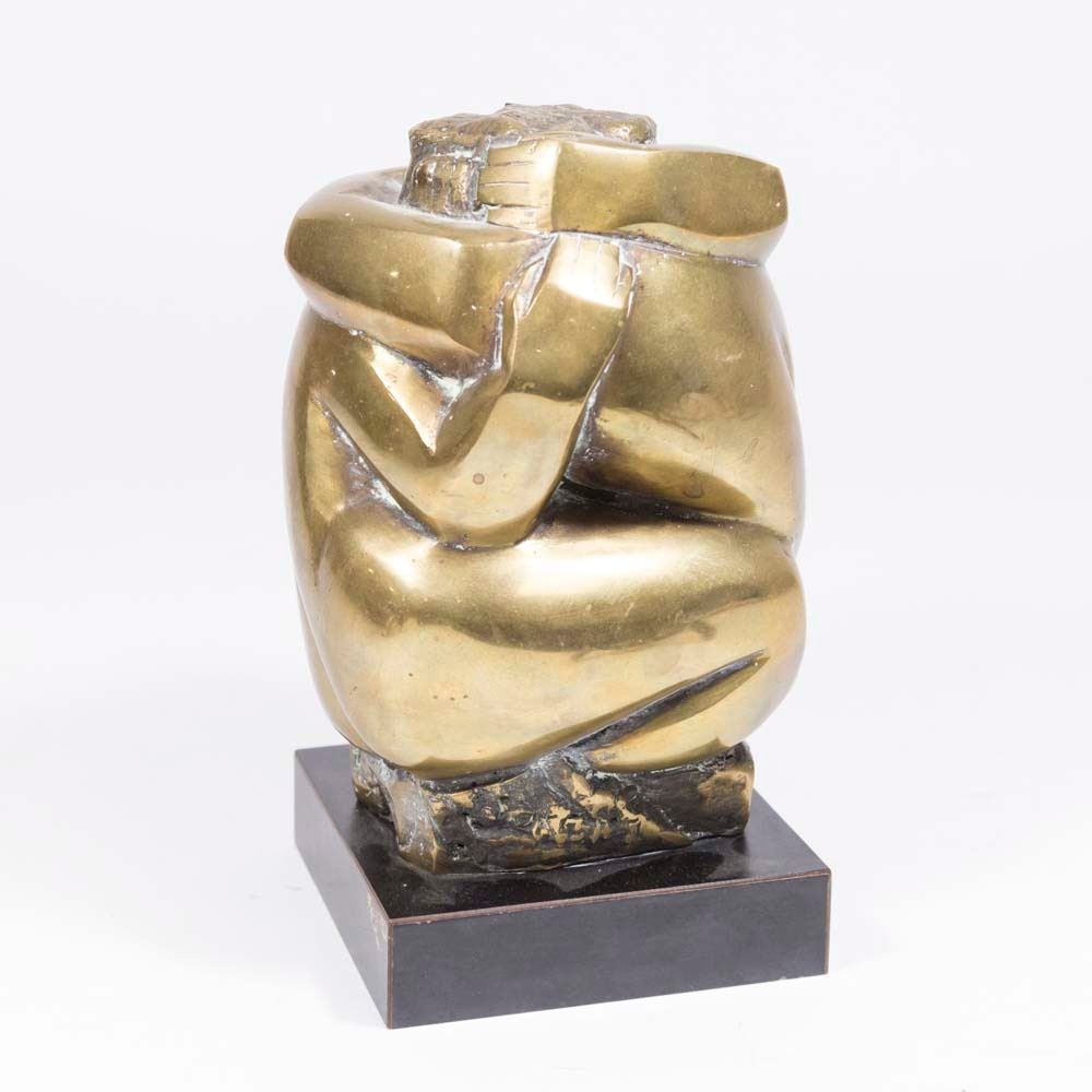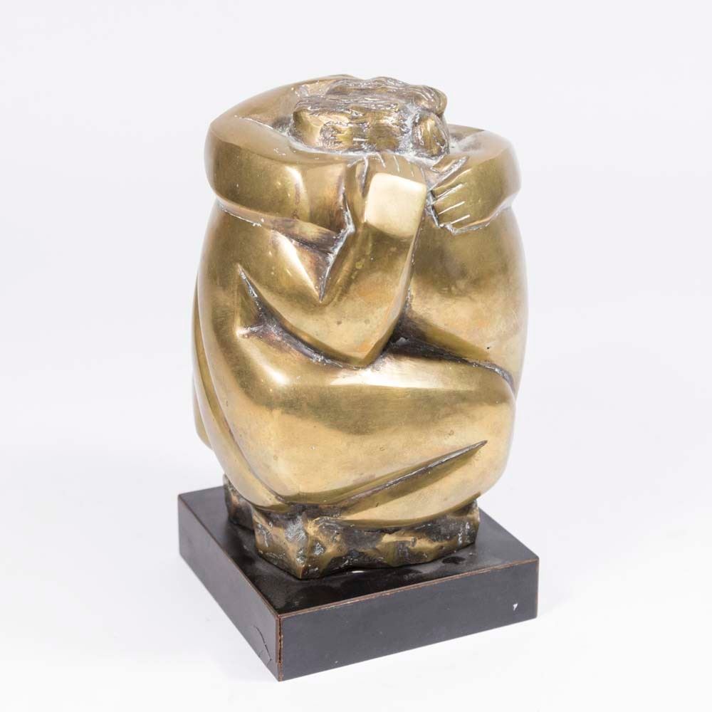 Abstract bronze. On wood base. Signed on base. Approx. 9" H.