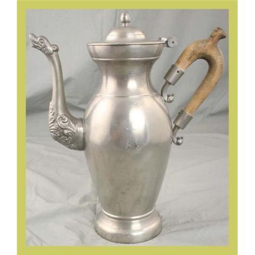 </STRONG>Title: 1930 Belgian Barware Pitcher Dragon Spout Wooden Handle </STRONG><P>Item #: 6-103-0</P><P>Comment: Nice heavy weight. A great additon to your collection!</P><P>Condition: Wear to handle due to age does not affect the beauty of the piece. Overall great condition!</P><P>Dimensions (in.): 14H 6.5W 12D </P><P>Age (ca.): 1930</P><P>Origin: Belgium</P><P>Style: Barware</P><P>Material: Pewter</P><P>Object: Pitcher</P><P>Subject: Dragon Spout Wooden Handle</P><P>Piece Type: Pewter</P> #NTR# Belgian Dragon Spout Wooden Handle Pitcher Barware Pewter