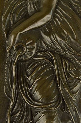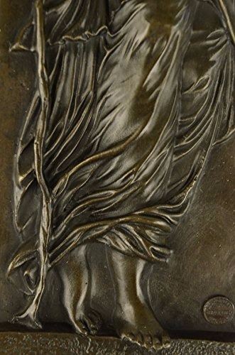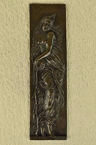 This Sculpture Of A Woman Holding A Vase Filled With Water, Which She Is Emptying Is Exquisite. She Has This Beautiful Long And Droopy Dress That Leaves Her Breast Bare, So Its Place Right Under Her Chest. She Seems To Not Care And Continue Doing As She Was Doing, She Has A Hood That Looks More Like Another Big Drape Hanging Off Her Head. She Is A Lovely Woman Full Of Grace And Elegance. She Is Bare Foot Walking Through He Park With Her Water Vase. She Is Cast Using The Ancient Old "Lost Wax Method" Stained In Brown Patina. Size: 18X5 inches. Weight: 5 LBS.