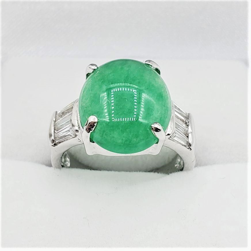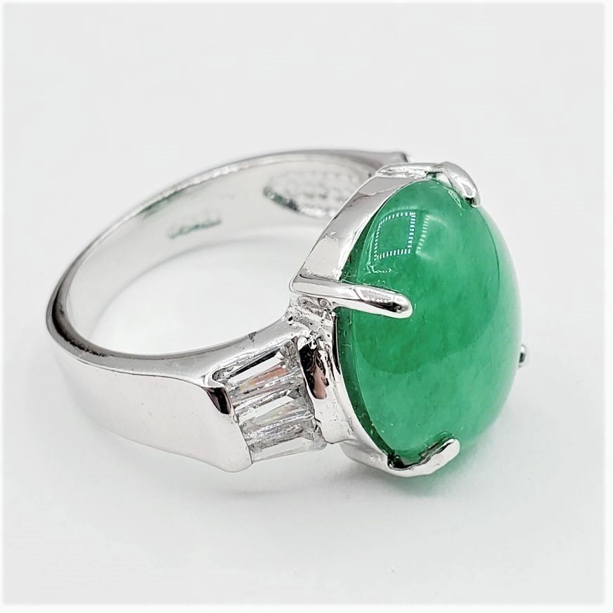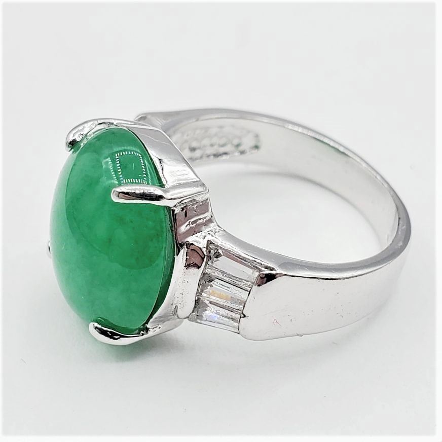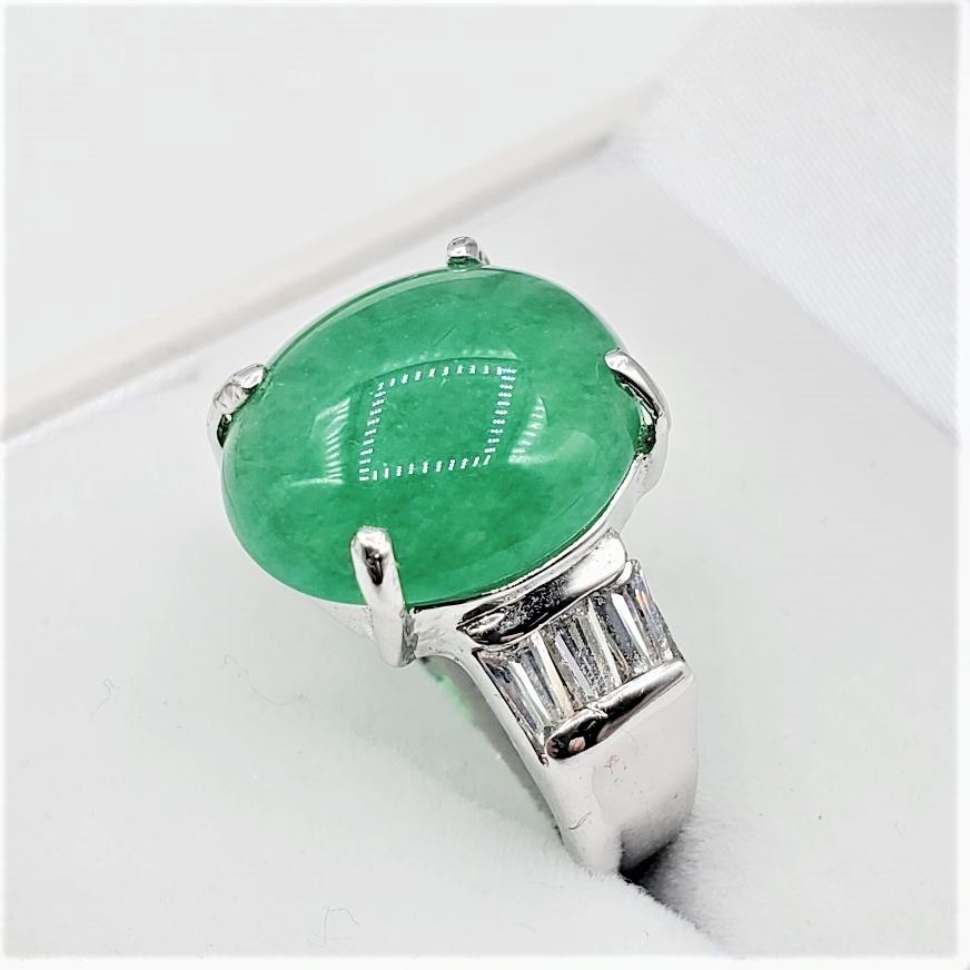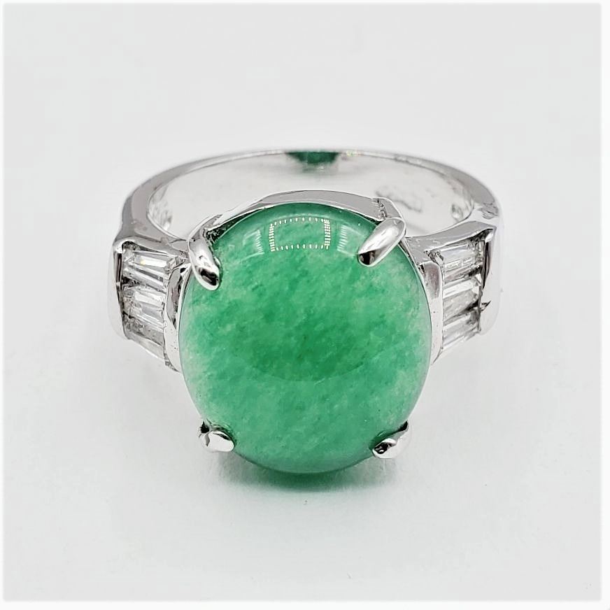 Base Metal 13.75mm x 11.5mm Natural Jadeite & CZ Ring, Size 8, retail $300.00
