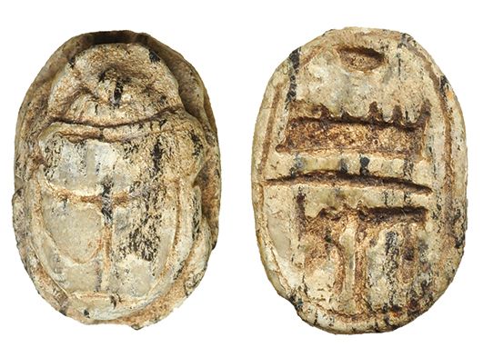 Base grabada con los signos Men-Kheper-Re en trono (nombre de Tutmosis III). Último Periodo (1504-525 a.C.). Esteatita. Longitud 1,3 cm.