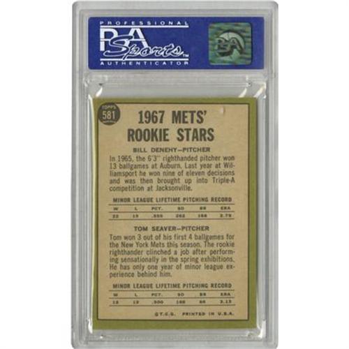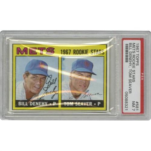 <B>1967 Topps Mets Rookie Stars Bill Denehy, Tom Seaver #581 PSA NM 7.</B></I> The baseball world is introduced to a Hall of Fame hurler with this high-grade cardboard. Sharp contrast results in wonderful eye appeal.<BR><BR><b>Shipping:</b> Sportscard (<a target="_blank" href="http://www.heritageauctions.com/common/shipping.php">view shipping information</a>)