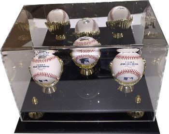 Deluxe Triple Baseball gold glove display case with mirror back. An awesome way to display 3 baseballs in just 1 Case!. note: baseballs sold separately.