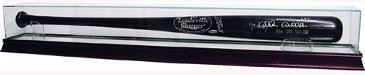 These Steiner glass display cases are a necessity for any committed sports memorabilia enthusiast. Your timeless pieces whether autographed helmets or balls will be safe from dust and fading with our top-of-the-line exquisitely crafted cases. Each UV-protected display case is hand-made and includes a removable glass top for easy access. With a mirrored bottom and stunning cherry wood base your memorabilia will look stylish and protected in any setting. This baseball bat display case measures in overall size of 37 inches in length with a width of 4.5 inches and a height of 5.25 inches. The available space within the case is 36 inches in length with a width and a height of 3.75 inches. Bats sold separately and are not included.
