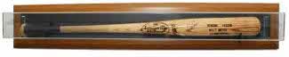 This single bat display case has a wood finish base and comes table top or wall mountable. Your baseball bat will stay in mint condition dust-free for years to come. If you are buying a bat case for that special autographed bat or your own personal achievement, we have the perfect bat case for you to preserve your treasured baseball bat in its original condition. Approx: 36 3/8" W, 4" D, 3 3/8" H. Made in USA. Note: bats sold separately.