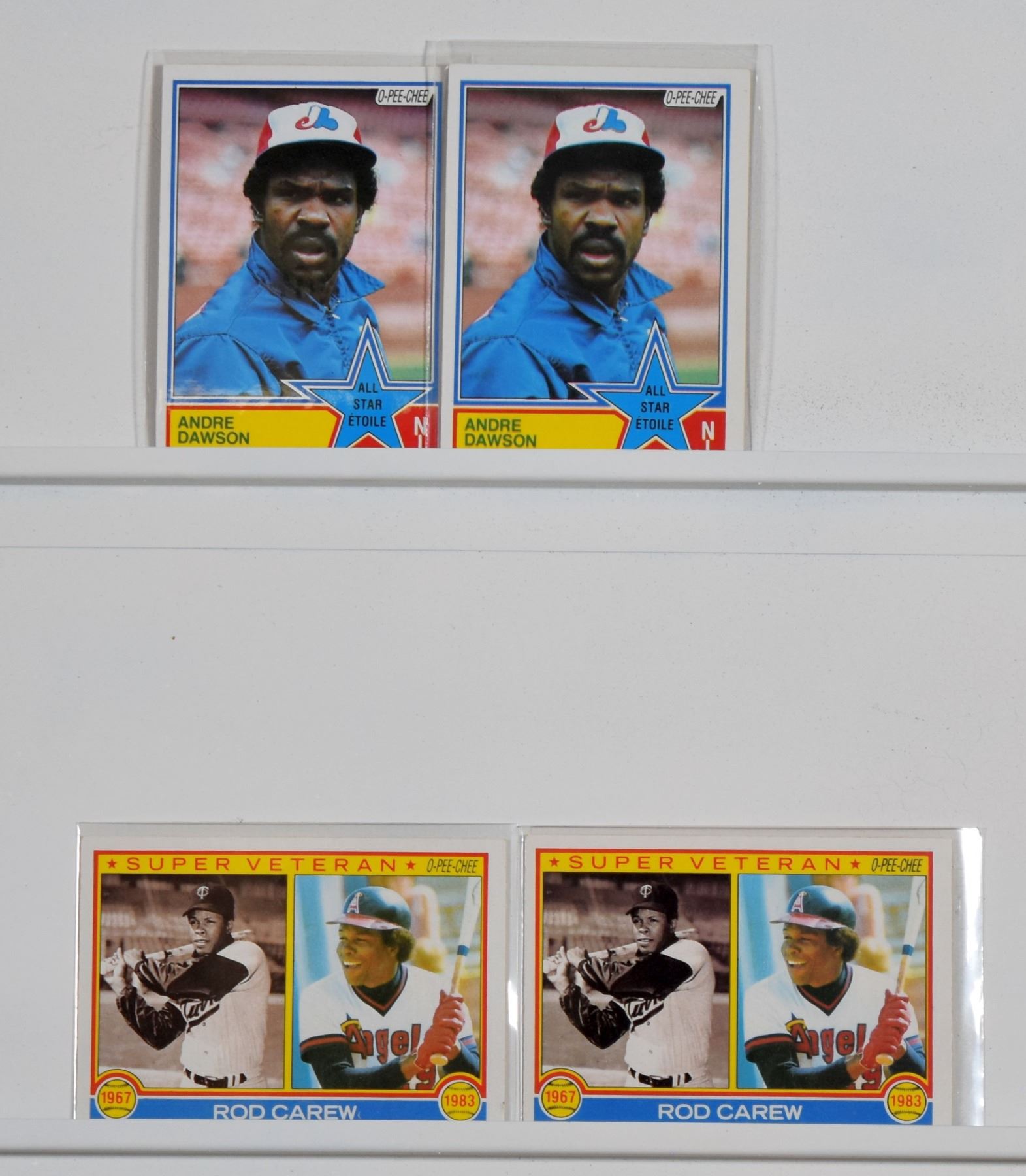 Lot of 4 Cards O-Pee-Chee 1983 including Andre Dawson All Star x2, Rod Carew Super Veteran x2