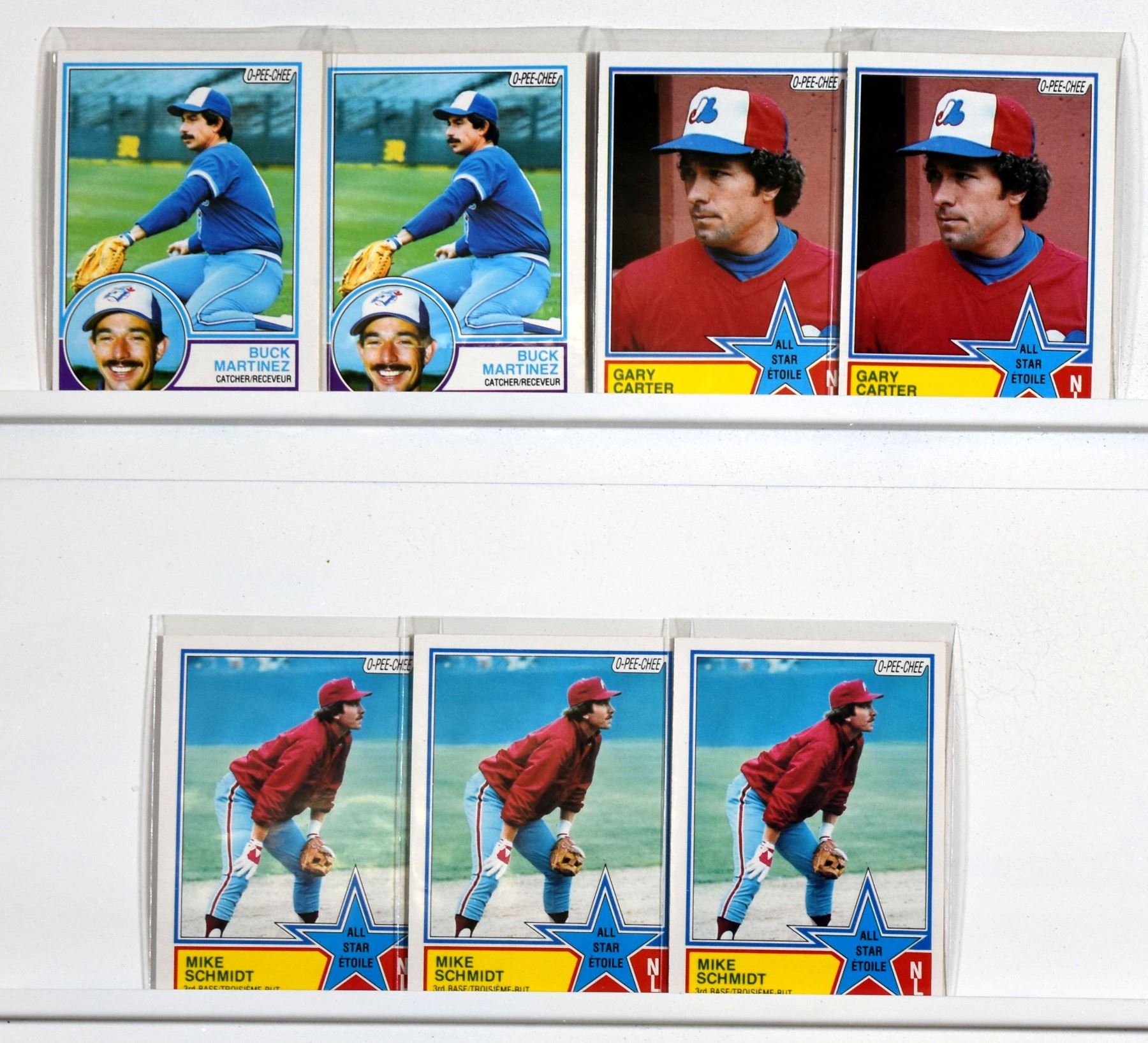 Lot of 7 Cards O-Pee-Chee 1983 including Mike Schmidt x3, Buck Martinez x2, Gary Carter x2