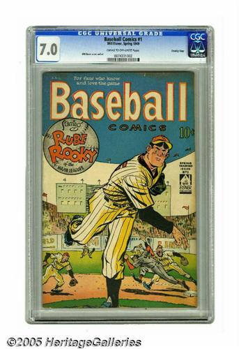 <B>Baseball Comics #1 Crowley Copy pedigree (Will Eisner, 1949) CGC FN/VF 7.0 Cream to off-white pages.</B></I> Will Eisner cover. Eisner and Jules Feiffer art. Overstreet 2005 FN 6.0 value = $213; VF 8.0 value = $444. CGC census 5/05: 1 in 7.0, 1 higher.