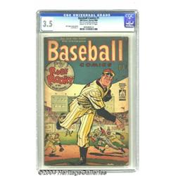 Baseball Comics #1 (Will Eisner Productions, 1949) CGC VG- 3.5 Cream to off-white pages. Will Eisner cover and art. Jules Feiffer art. CGC notes, "From the Collection of Dave Berg." Overstreet 2003 VG 4.0 value = $140. Important notice: Heritage usually auctions material at the rate of 200-250 lots per hour. On some occasions eBay Live bid software or the Internet may not be able to keep up with the pace of the auction. We recommend placing a realistic absentee bid now as insurance to avoid disappointment. Occasionally the auctioneer may eliminate or reject an eBay Live bid, and the auctioneer may also reopen a lot after the close of the eBay live bidding (usually because we missed an audience bid), and may reject your bid even if it shows you as the winning bidder. By bidding via eBay Live, you agree that Heritage may award the lot to another bidder at its sole discretion under the circumstances described above or any other reasonable circumstances. Since eBay bids are not shown to us until we open the lot on the floor, we treat those bids just like floor bids. In most cases the floor responds before the eBay bid is presented to us, due to Internet lag time, so for consistency we have made it a policy that floor bids are always considered first over tie eBay live bids. Also please note that all Heritage lots purchased through eBay Live carry a 20% Buyer's Premium. Please make sure you read the Terms and Conditions before you bid.