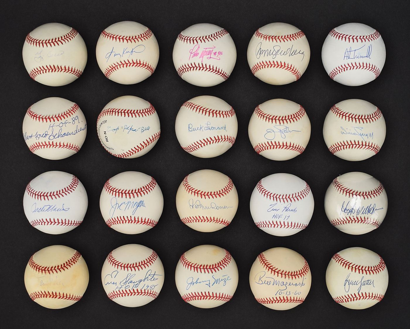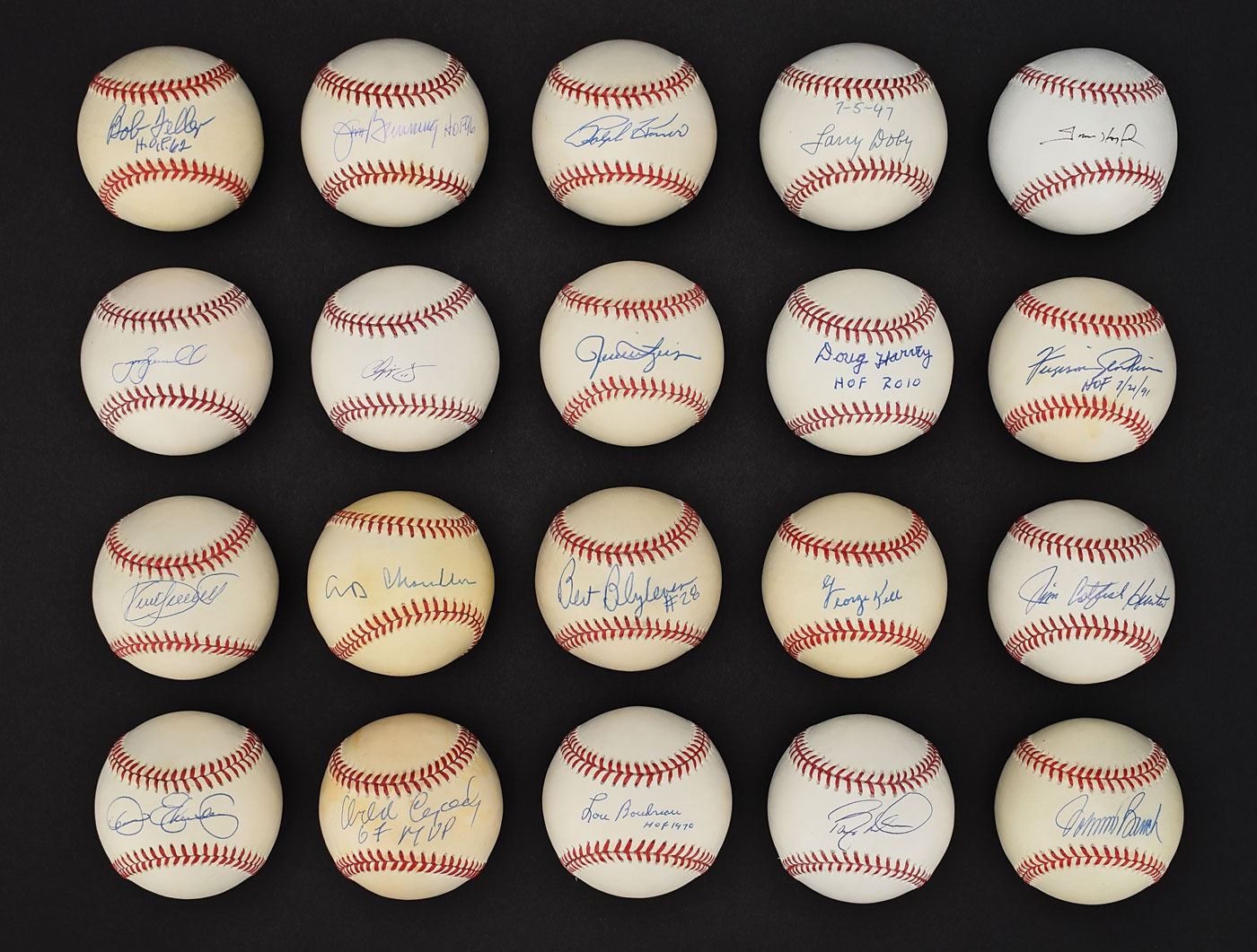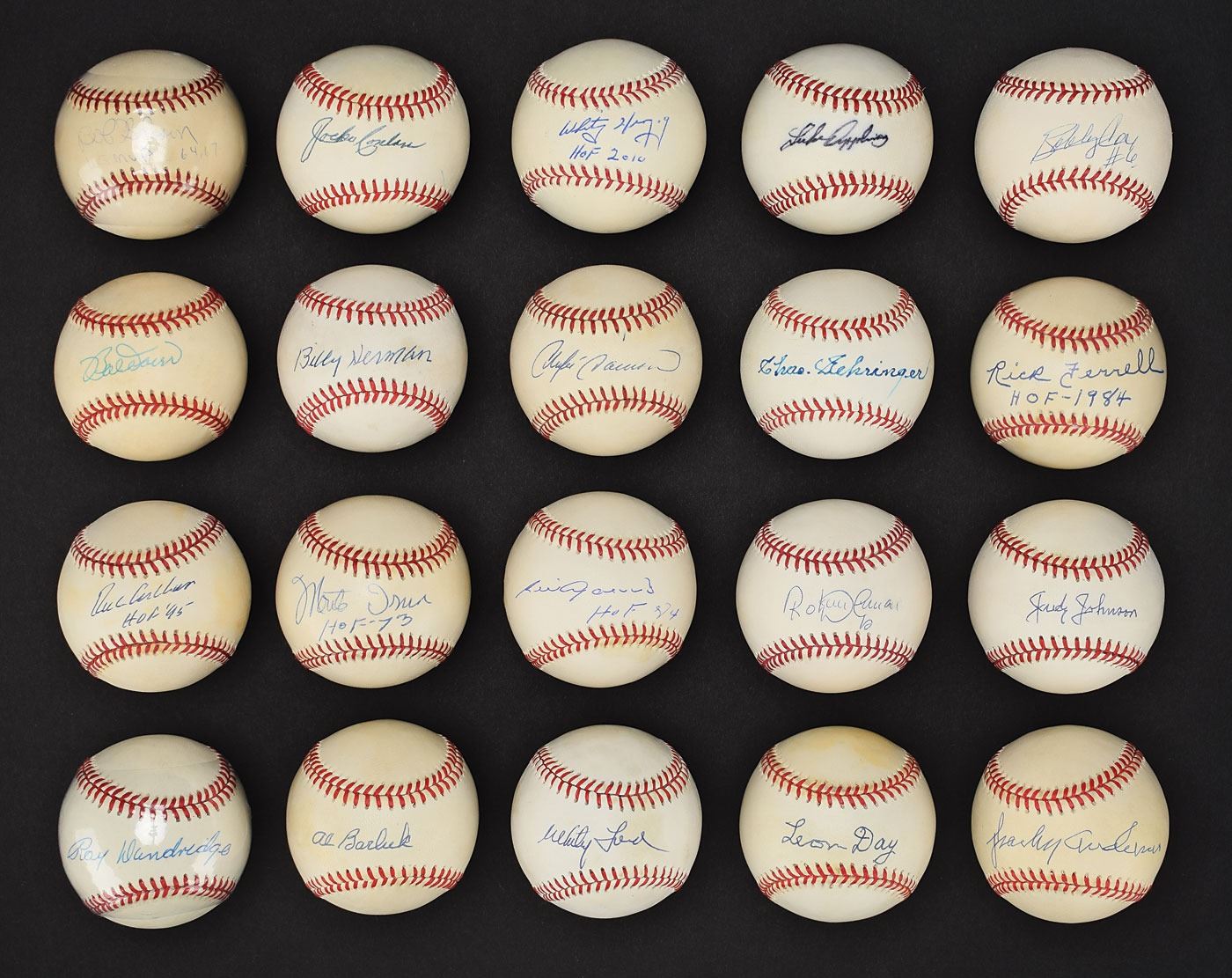 Very large collection of HOFer single-signed baseballs, most bold ink signatures, with a few lighter, all on OAL/ONL/OAL balls. Many of the recent inductees are present, with players, managers, executives, and umpires, with a couple dozen of deceased HOF members.