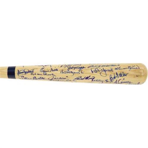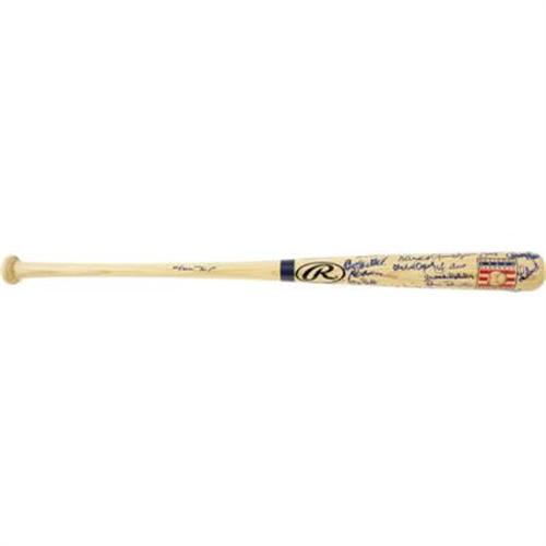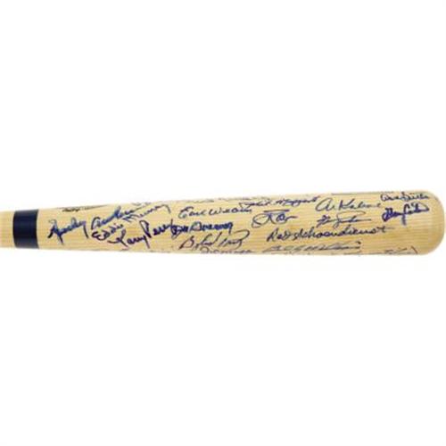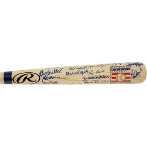 <B>Baseball Hall of Famers Multi-Signed Bat from Phil Rizzuto Collection.</B></I> A torch carried for years by the pinstriped legend can now be passed on to you, to add to the collection of forty-plus blue sharpie autographs acquired by Scooter himself. The full-size Rawlings Big Stick is emblazoned with a logo of the Hall of Fame, which is surrounded by 9/10 and better signatures from the likes of Mays, Bench, Brock, Fingers, Seaver, Killebrew, Ford, Palmer, Puckett and Rizzuto himself. There's still plenty of room left for more though, and any Hall of Famer would be honored to add his John Hancock to this treasured keepsake from the Yankee shortstop. Letter of provenance from Rizzuto's widow Cora is included. <I>LOA from PSA/DNA. LOA from James Spence Authentication.</B></I><BR><BR><b>Shipping:</b> Bats, Clubs, Sticks, Swords, Rif (<a target="_blank" href="http://www.heritageauctions.com/common/shipping.php">view shipping information</a>)
