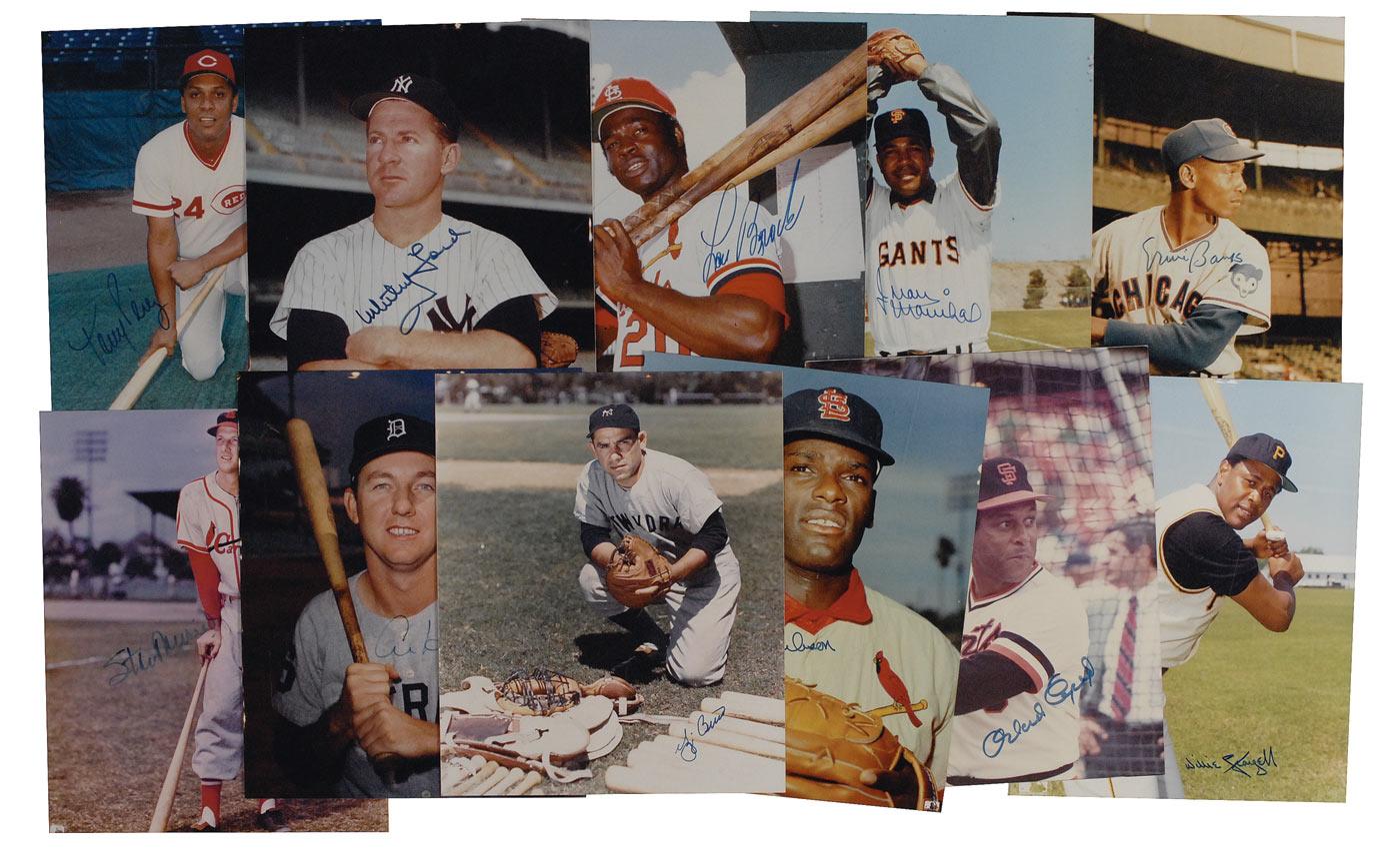 Eleven signed 8 x 10 photos, nine glossy and two satin-finish, each signed in felt tip by the respective Hall of Famer pictured. Signers are: Ernie Banks, Juan Marichal, Lou Brock, Willie Stargell, Tony Perez, Whitey Ford, Stan Musial, Al Kaline, Yogi Berra, Orlando Cepeda, and Bob Gibson. In fine overall condition, with a couple edge dings to Gibson’s photo.