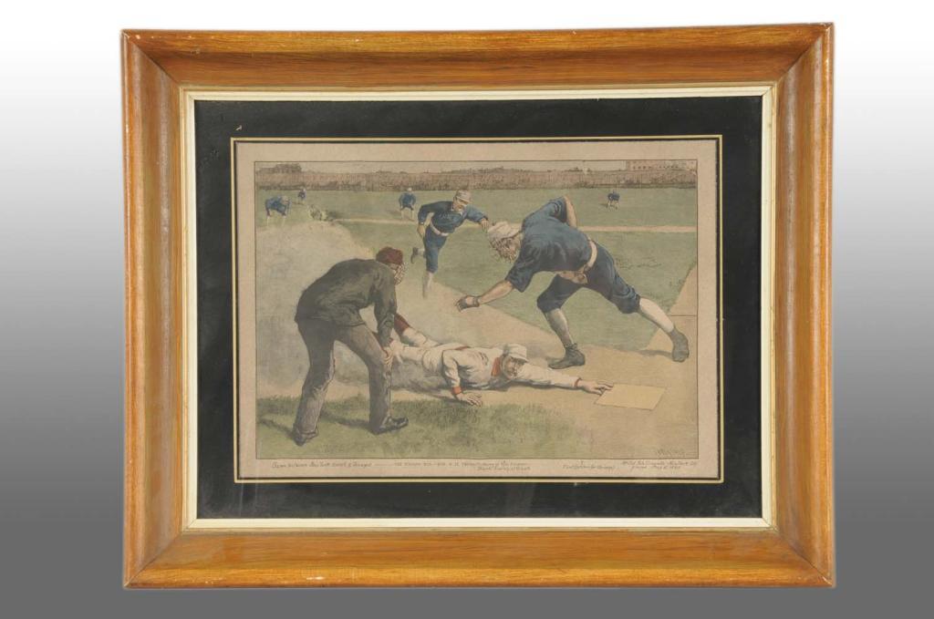 Dated 1885. "The Winning Run" signed by T. De Thulstrup. Great detail. Small repair at top and top right corner. 28 - 1/2" x 23" framed under glass. Condition (Excellent). Size Visible Image: 20" x 14".