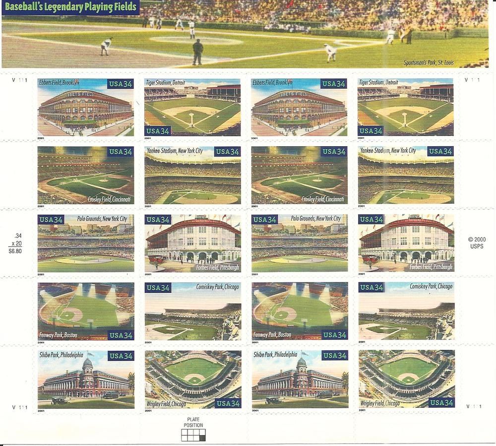 Baseball Legendary Playing Fields Collectible Sheet of 20 34 Cent Stamps Scott 3510-19