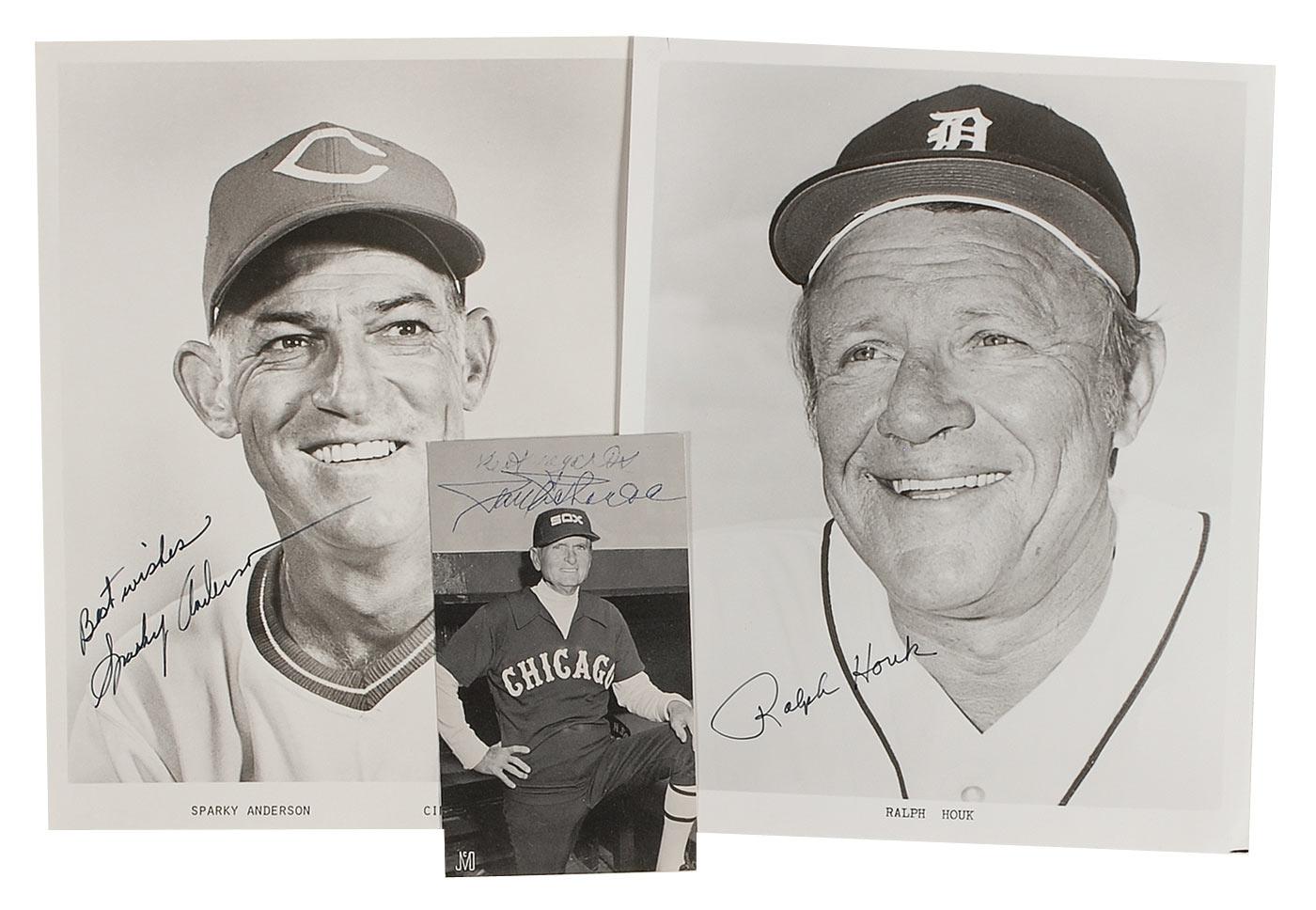 Three photos, two glossy 8 x 10 and one 3.25 x 5.5, each signed in ink or felt tip by the respective manager pictured. Signers are: Sparky Anderson, Ralph Houk, and Paul Richards. In fine overall condition.