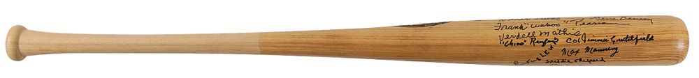 Official Louisville Slugger Eric Davis baseball bat signed in black felt tip on the barrel by 13 former players including Joe Black, Freddie Shepard, Max Manning, Rufus Lewis, Verdell Mathis, Frank ‘Wahoo’ Pearson, Wilmer Fields, Gene Benson, and Col. Jimmie Crutchfield. In fine condition.