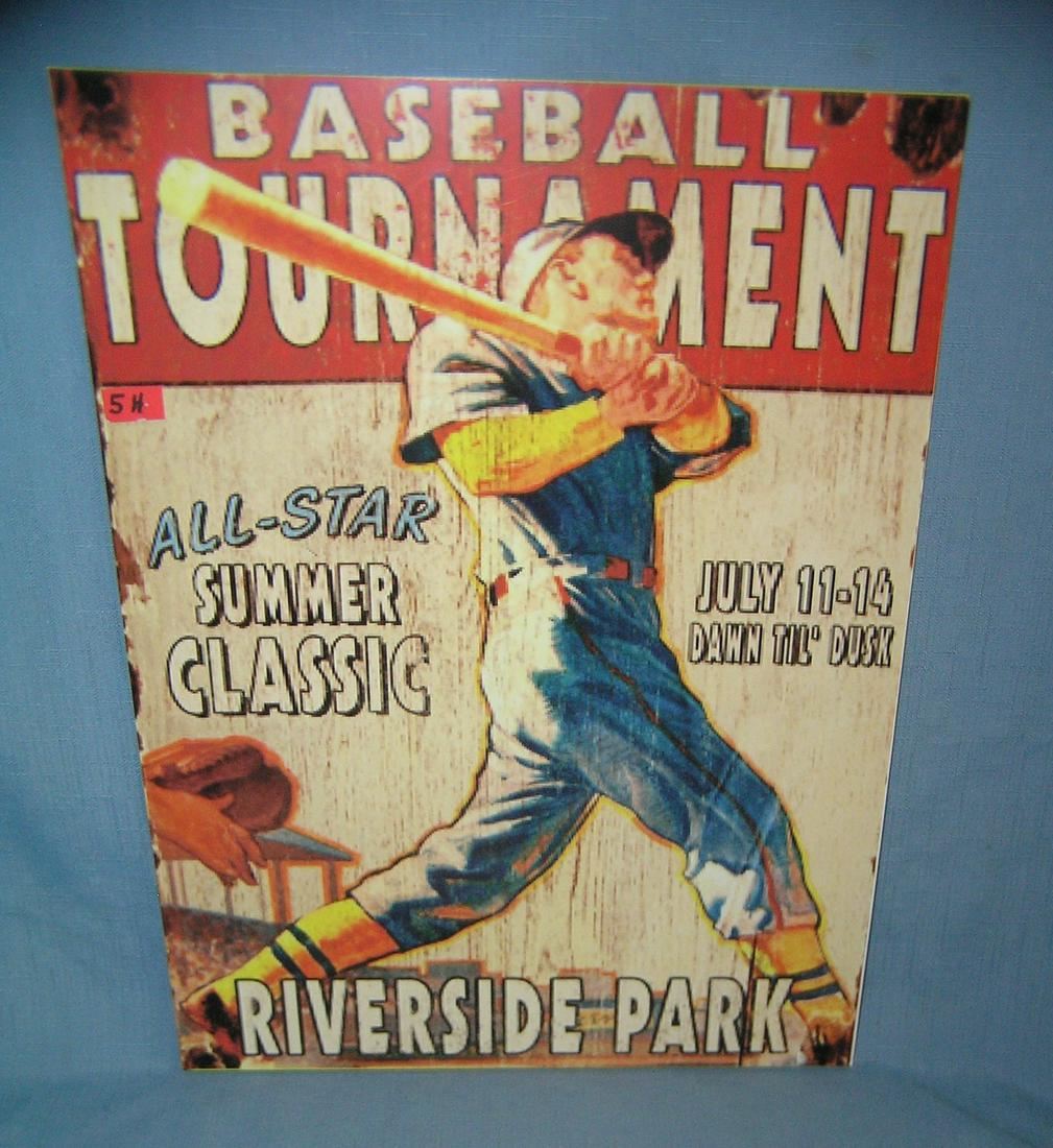 Baseball Tournement Riverside Park retro style advertising sign 12 inches by 16 inches est. value $40.00-$50.00