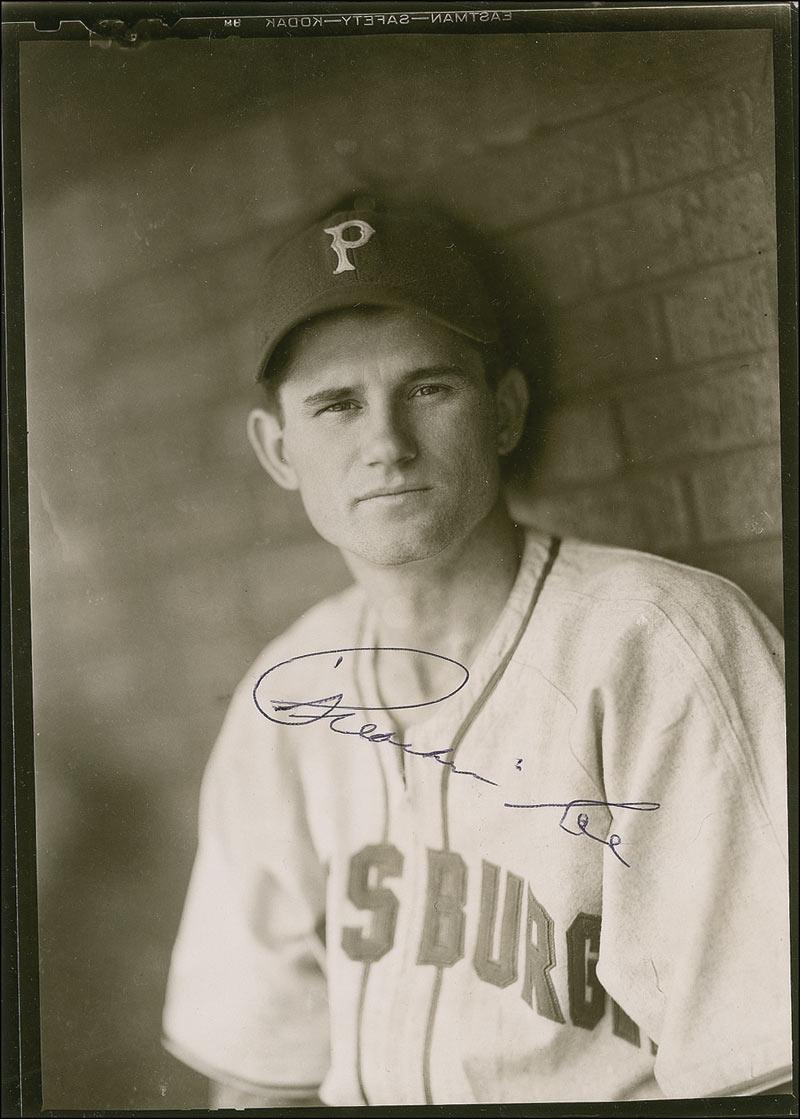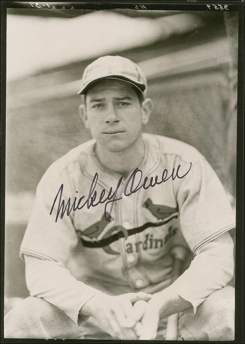 Three unique heavyweight semi-glossy photos, all made from the original negative, each signed in ballpoint or felt tip by the respective player pictured. Signers are: Mickey Owen, Bill Goodman (ins), and Preacher Roe. In fine overall condition.