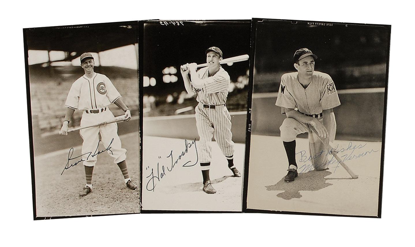 Three semi-glossy heavyweight photos, 5 x 7, all made from the original negatives, each signed in ballpoint or ink by the player pictured. Signers are: Stan Hack, ‘Hal’ Trosky, and Mickey Vernon. In fine overall condition, with a few light creases and surface marks.