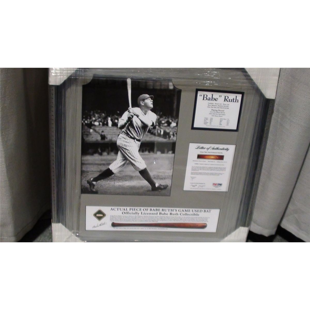 Babe Ruth Actual Piece of Game used Bat Framed W/ Photo in a Yankees Uniform, Stats & Letter of Authenticity