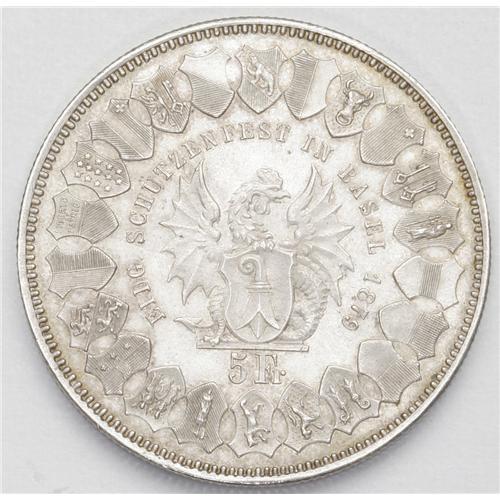 Basel 5 Francs Shooting Taler 1879, KM-S14, About Uncir Basel 5 Francs Shooting Taler 1879,