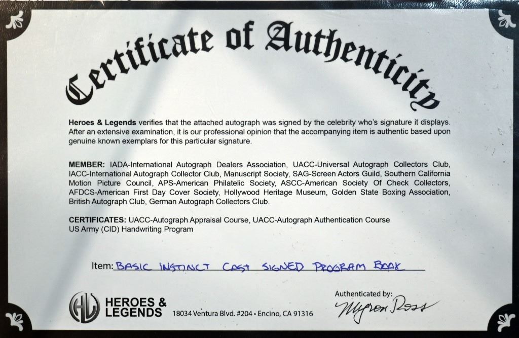 Basic Instinct signed Japanese movie poster autographed by Sharon Stone and Michael Douglas. HL7885