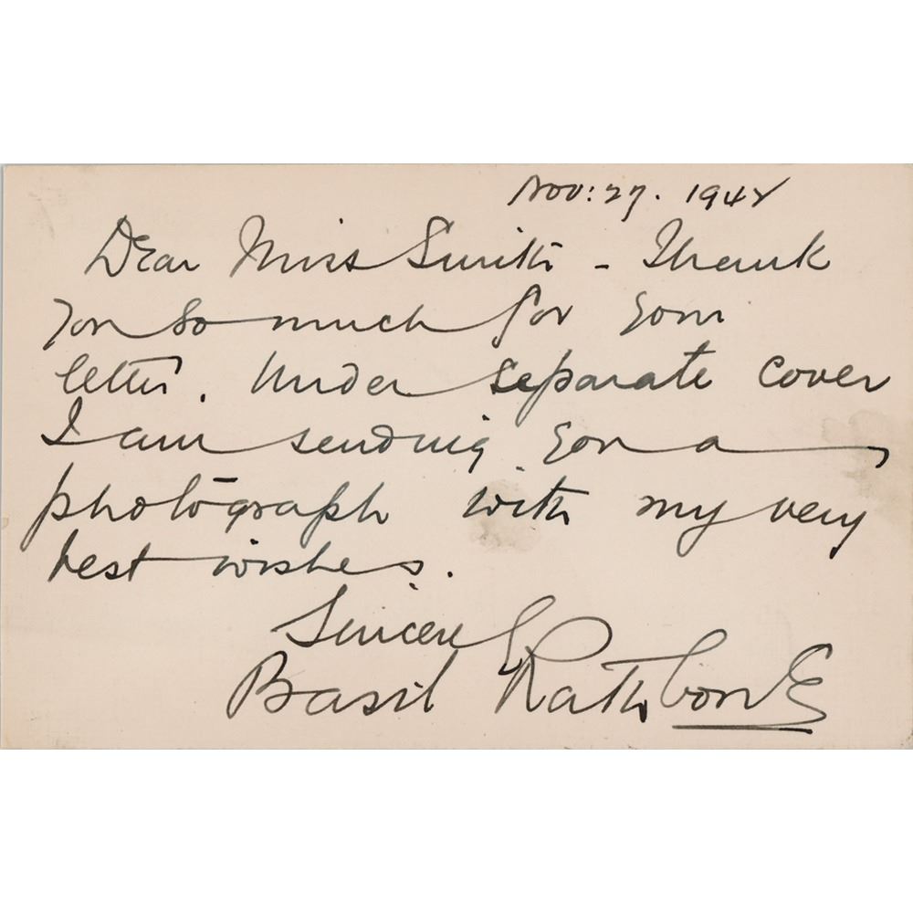 ALS, one page, November 27, 1942. Handwritten note to "Miss Smith," in part: "Thank you so much for your letter. Under separate cover I am sending you a photograph." In fine condition, with a PSA/DNA label affixed to the reverse. Accompanied by a certificate of authenticity from PSA/DNA.