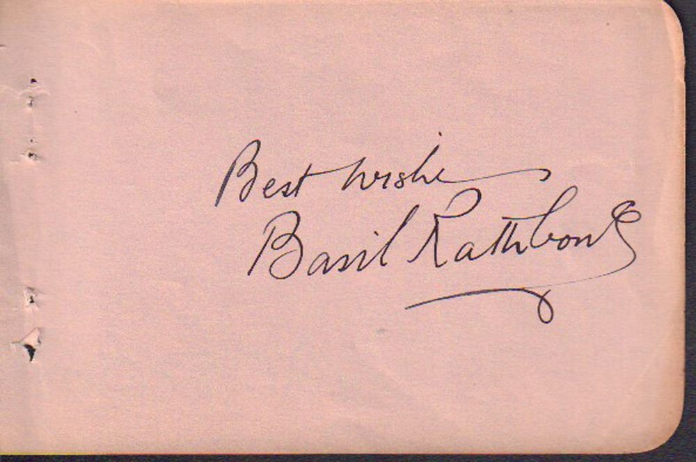 Autograph book page signed by Basil Rathbone. All items come with a certificate of authenticity good for the life of the piece.
